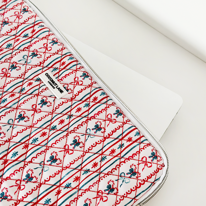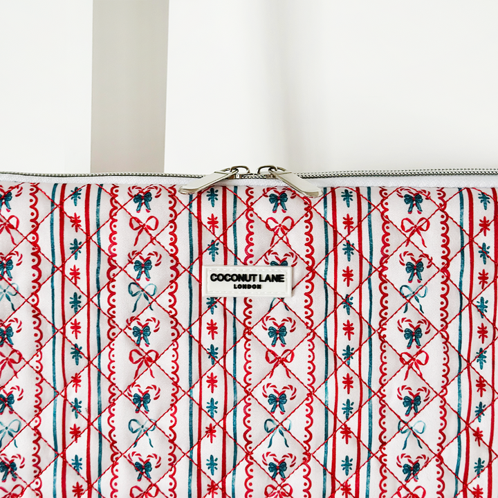 Wrap your tech in festive style with the Quilted Let It Bow Laptop Sleeve – the perfect blend of festive fashion and everyday protection!