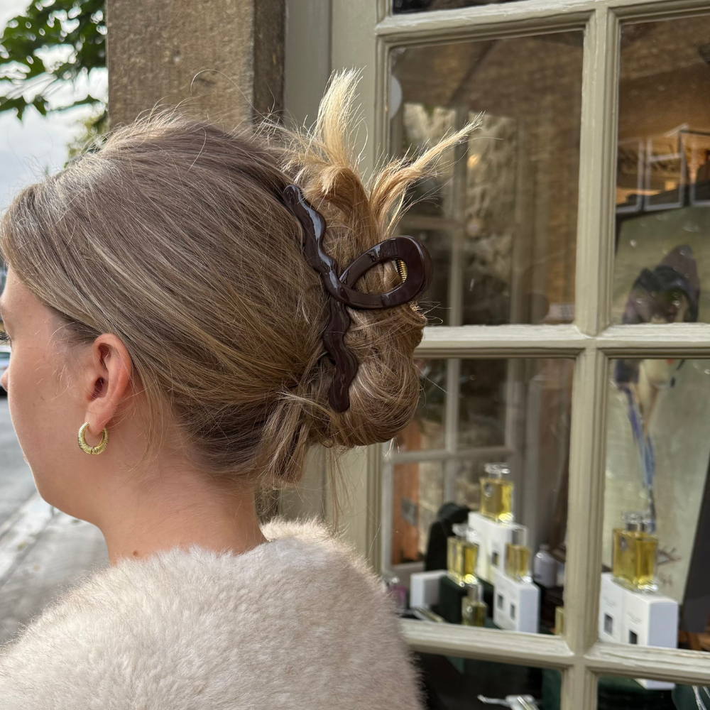 Treat your tresses to something sweet with our Wavy Claw Clip in Chocolate.