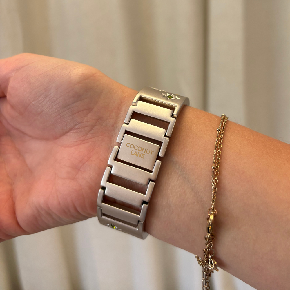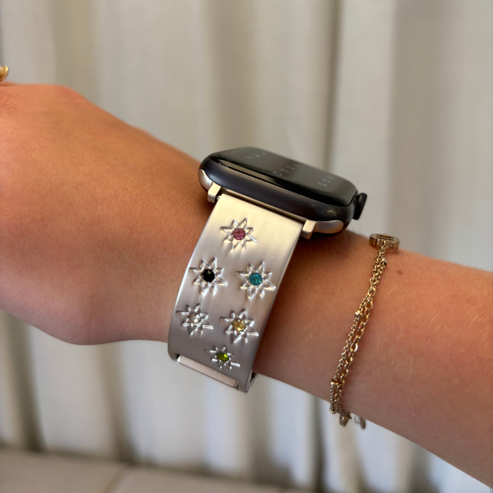 Bring some dreamy, sun-kissed sparkle to your wrist with our Ibiza Coloured Stone Apple Watch Strap in Starlight. Designed for the girls who love their accessories sweet, stylish, and just a little bit magical, this strap is dotted with delicate coloured stones that shimmer like a summer sunset on the beach. 💫🌸