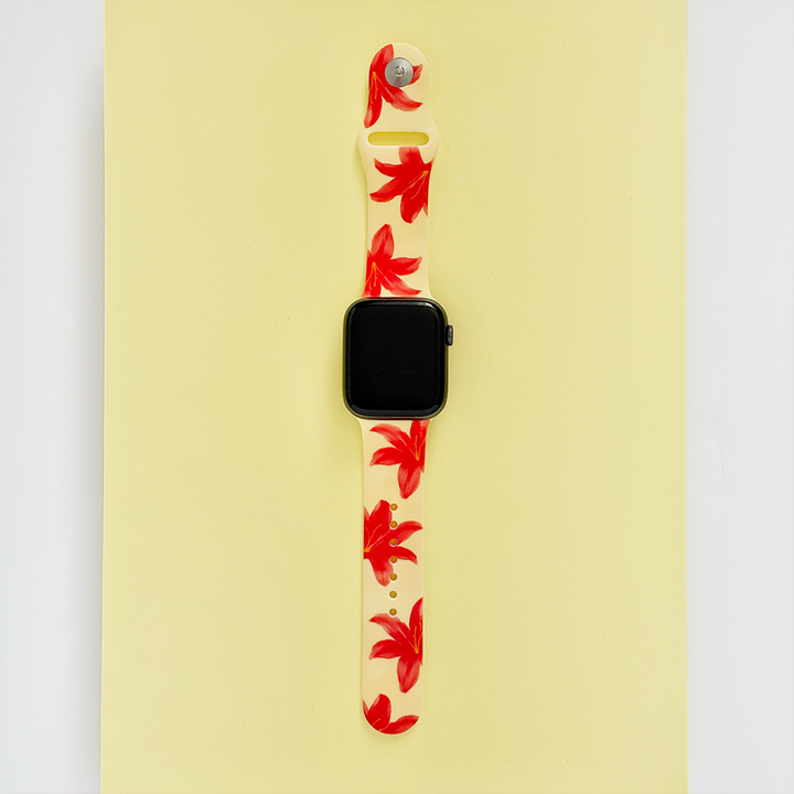 Drenched in soft pastel tones and delicate lily blooms, this strap captures the magic of golden hour on the coast of Ibiza. It’s effortlessly pretty, full of floral charm, and made for the girl who’s always chasing the sun.