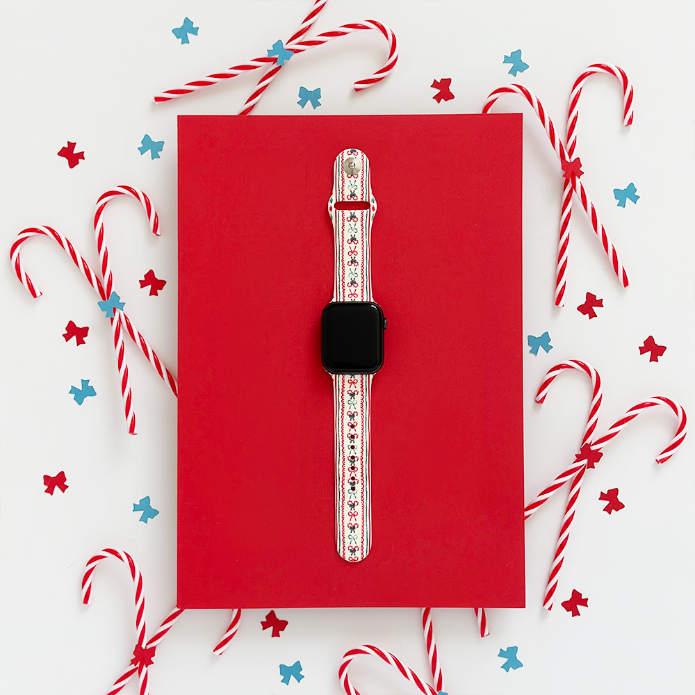 Crafted from high-quality, durable silicone, the Let It Bow Apple Watch Strap is both soft and comfortable, making it ideal for all-day wear. The adjustable design guarantees a perfect fit for every wrist size, while the secure pin-and-tuck closure keeps your watch firmly in place as you move through your day. Plus, it’s water-resistant and easy to clean, so you can enjoy the festivities without worry!