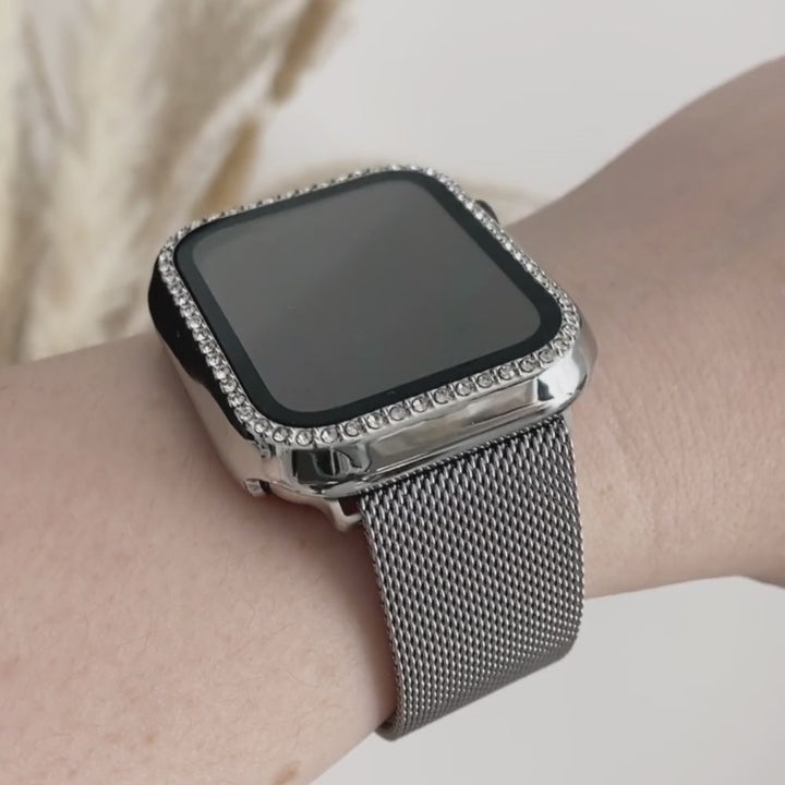 2-in-1 Apple Watch Case & Built-In Screen Protector - Silver Diamante