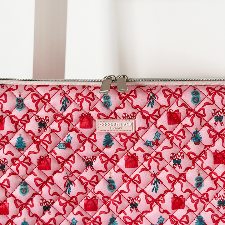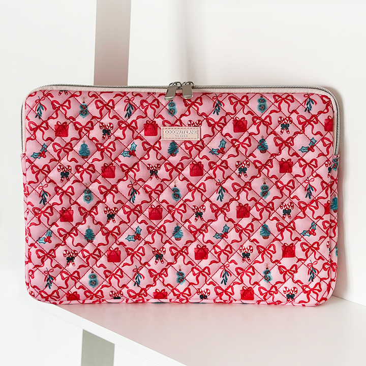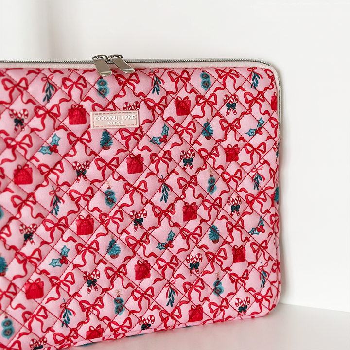 Get ready to smooch your tech in style with the Quilted Christmas Kisses Laptop Sleeve – the ultimate festive accessory for your laptop! This flirty and festive sleeve is dressed in a quilted Christmas design giving your everyday work routine a merry little makeover.
